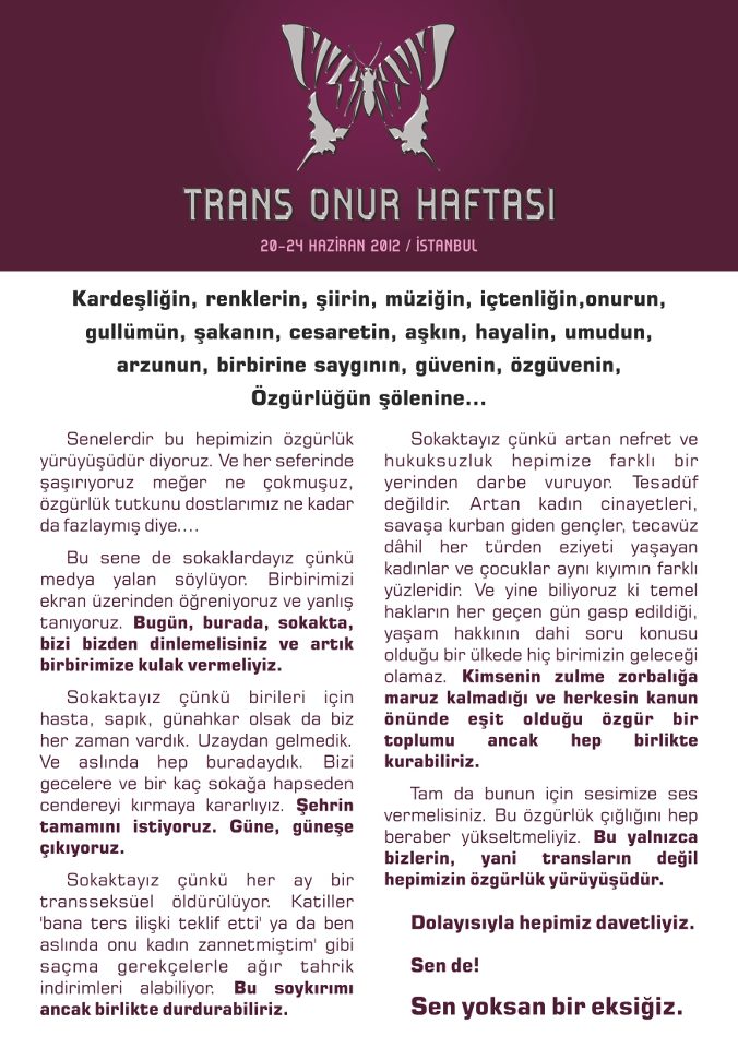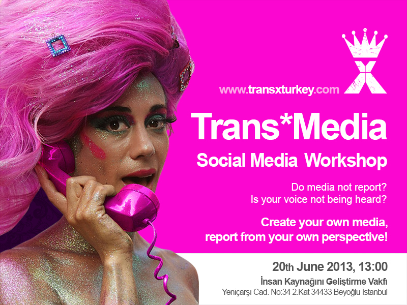 We kindly like to invite you to the social media workshop Trans*Medya where we will talk about using social media effective for Trans rights and against hate crimes.