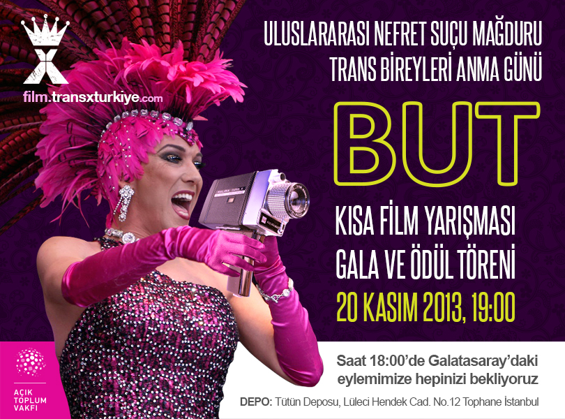 BUT Gala ve Ödül Töreni Kokteyl, kısa filmlerin gösterimleri. Esmeray'ın oyunu, Almanyalı DIE PLANUNG ve Trans* Müzik Atölyesi katılımcılarından müzik, Semah Gösterisi, Ödül Töreni DEPO: Tütün Deposu Lüleci Hendek Caddesi No.12 Tophane 34425 İstanbul |