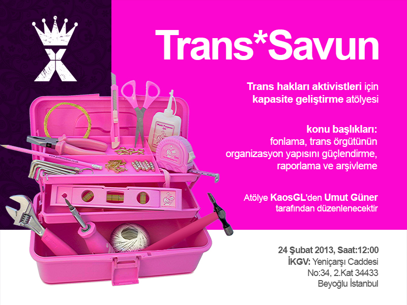 Trans hakları aktivistleri için düzenleyeceğimiz kapasite geliştirme atölyesine sizi davet etmekten onur duyarız. Atölye konu başlıkları: fonlama, trans örgütünün organizasyon yapısını güçlendirme, raporlama ve arşivleme.